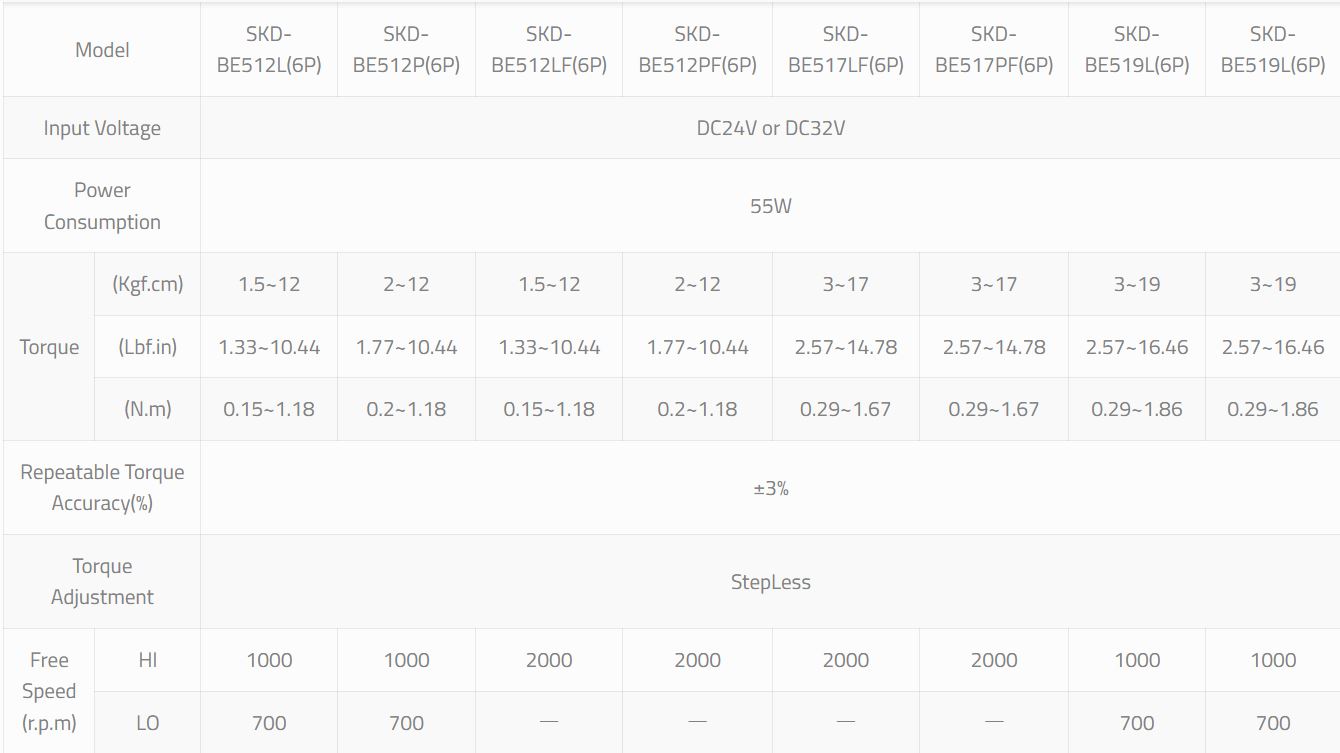 – Phạm vi lực siết từ 1.5~19kgf.cm, phạm vi vòng quay 700~2000r.p.m